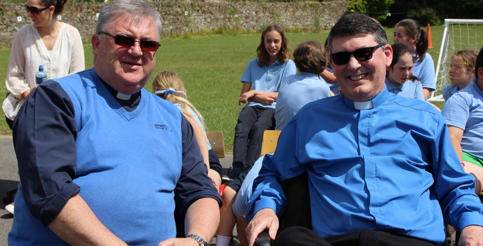 The day dawned bright and sunny which set the scene for the 6th class graduation ceremony. The parents, grandparents and siblings arrived at 12pm. We were delighted to welcome back Ms. Hosford who joined Canon Denis MacCarthy, Rev. Anne Skuse and Rev. Denis Maguire as our guests of honour. Pupils and staff from 1st - 5th class joined the festivities on the basketball court where Ms. Langford had hung a congratulatory banner and the prize table was laid with awards and gifts.